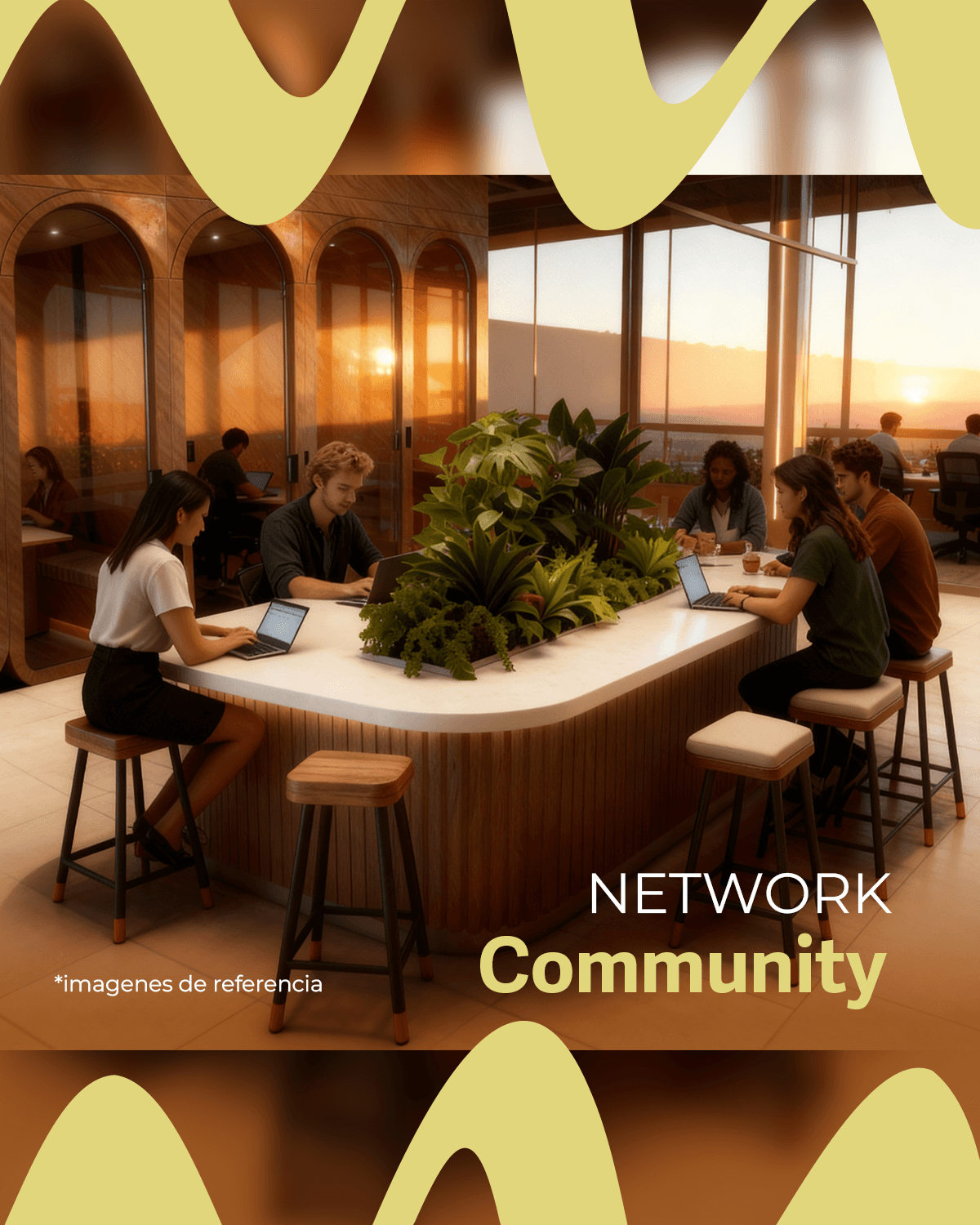 Recepción Salón empresarial Restaurante y cafetería Espacio de trabajo compartido Sala de reuniones Cabinas telefónicas Estudio para grabación de contenido Casilleros inteligentes Sala de equipaje